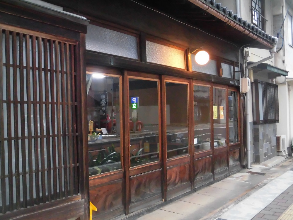 その下部には格子が室内からの照明により輝き