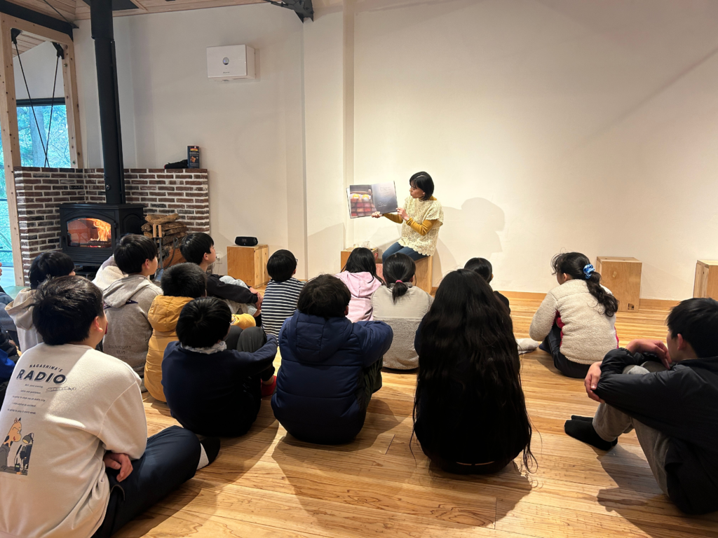 ろうそくが灯っている間は静かにするというお約束の中での読み聞かせや、自由に本を読む時間を森の中で過ごす素敵な時間でした。