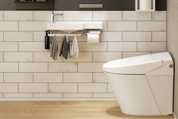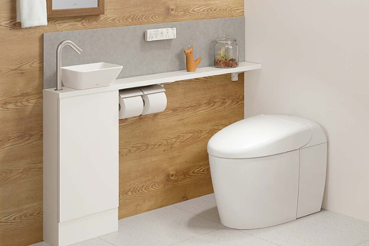従来便器と比べて奥行きが約100mmもコンパクト。タンクのないすっきりとしたシルエットは、空間に広がりを生み出します。清潔を保つ自動機能付き。