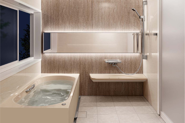 梁のある浴室でも、浴室の形状に合わせてぴったり合ったサイズでリフォームが可能です。業界最小クラスのサイズ1450×968㎜にも対応。