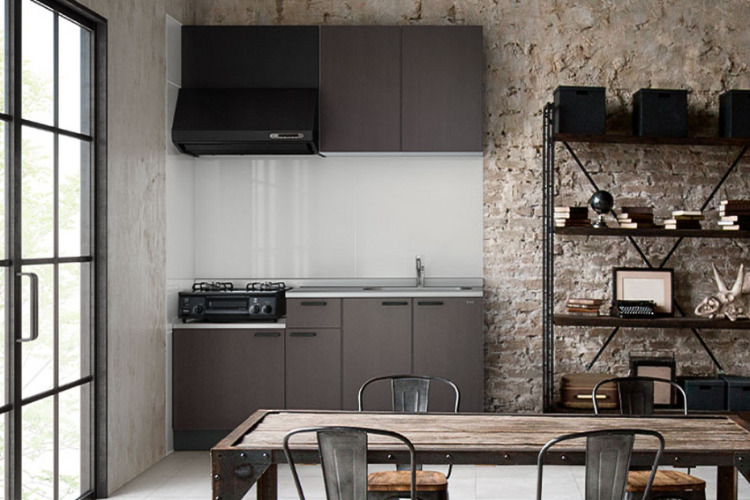間取りの小さい賃貸住宅でもぴったり収まる、コンパクトなサイズ感が自慢のシステムキッチン。