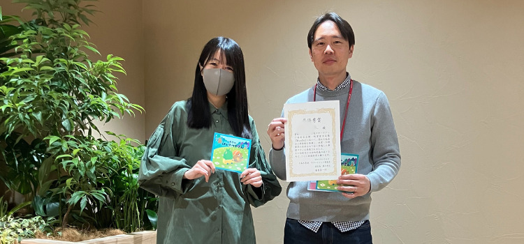 絵本を描いてくれたnanamiさん(左)と発表会にて受賞した上司のHさん(右)