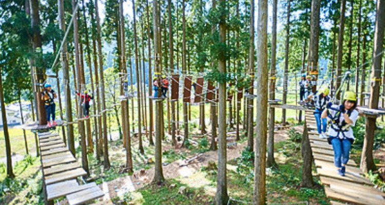 森林率92%の福井県池田町が仕掛ける、まち全体のプロジェクトです。森や木の資源や素材を利活用することで、子どもたちを育む町づくりを目指しています。山林をアトラクションにした「Tree Picnic Adventure IKEDA」では、樹上に広がる森のジャングルジムや、森のお仕事体験、教育旅行プログラムなど、山に出会い、木や自然から学ぶことの楽しさを知ることができる仕組みが詰まっています。