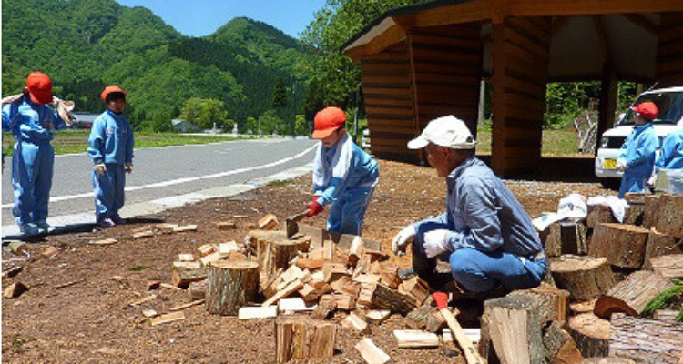 岐阜県美濃加茂市が掲げる「里山千年構想」に基づいた、里山資源活用事業の1つです。地域の里山に群生しているアベマキを有効活用することとし、その堅さを活かして、小学校の学校机の天板を制作しています。全国的にも珍しいのが、高学年生が実際に伐採現場や製材所などの視察をおこなった上で天板づくりをしているという点です。完成した天板は、6年生がその過程を伝えながら新1年生に贈呈するという仕組み化にも成功しています。